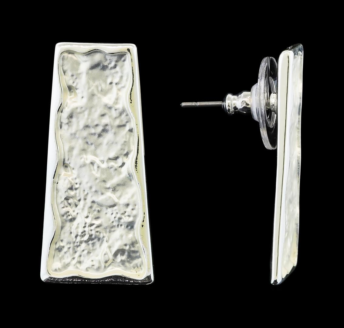 High end designer jewelry. Rectangular Bar Earrings - Rhodium Plated. Rhodium Plated Matte Metal. Silver. Stud.