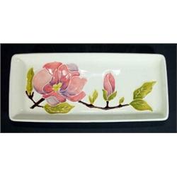 Rectangular Moorcroft tray, hand decorated with ivory magnolia pattern ,impressed marks to base, …