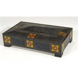 Rectangular Players Navy Cut tin, printed with Art Nouveau style flowers, 24cm long
