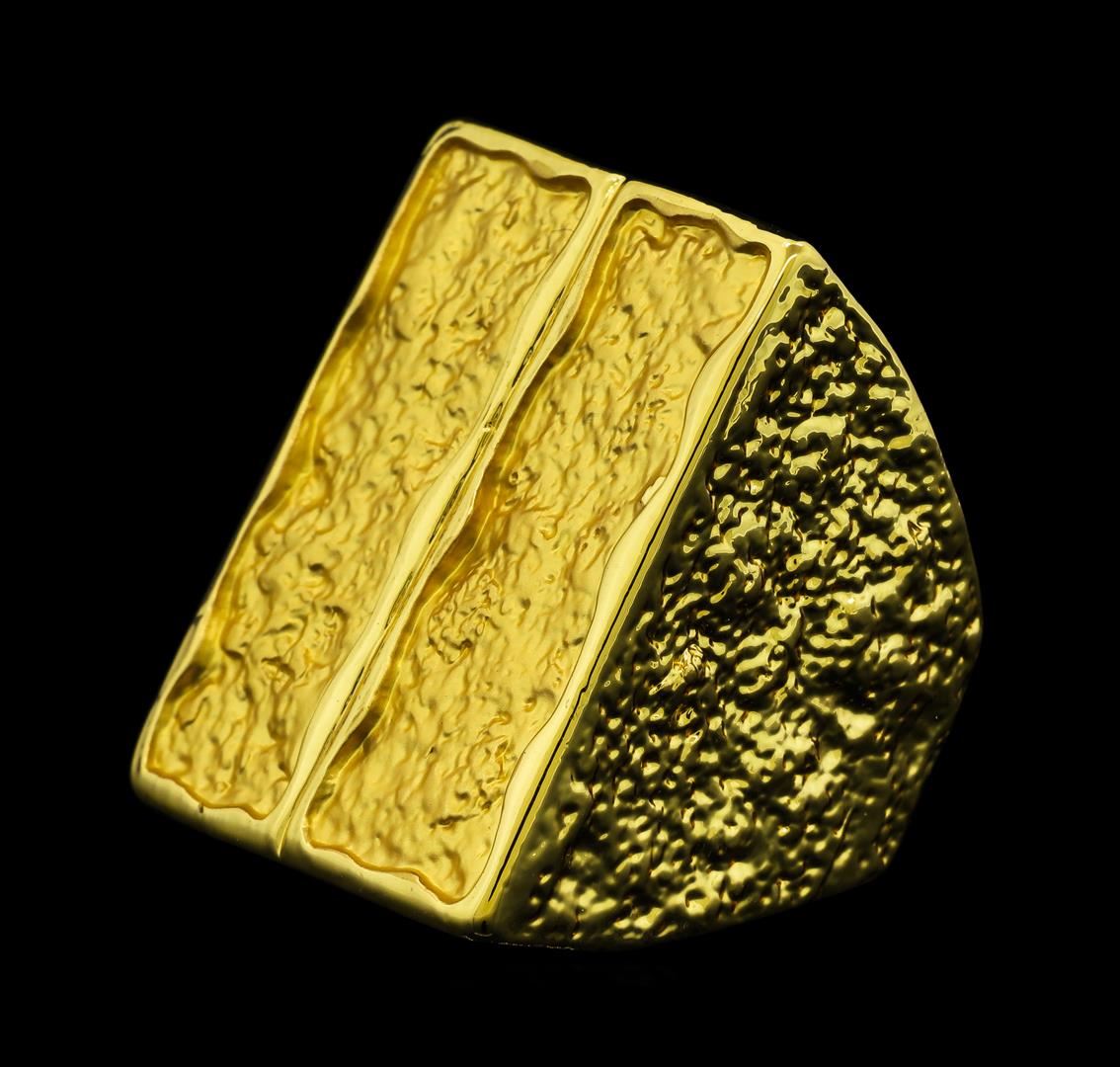 High end designer jewelry. Rectangular Ring - Gold Plated. 18 K Gold Plated Matte Metal. Gold. 8.