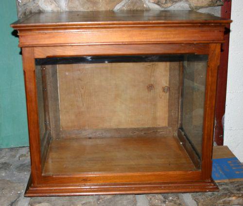 Rectangular showcase measures approximately 28" x 21" x 24" H. Hinged back door.