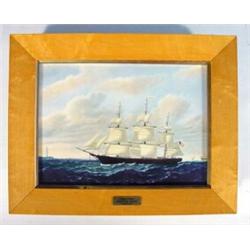 Rectangular Wedgwood burr maple framed clipper ship plaque 'Dashing Wave', marks to back, 32cm in length
