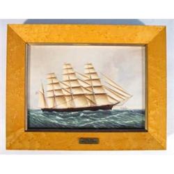 Rectangular Wedgwood burr maple framed clipper ship plaque 'Great Republic', marks to back, 32cm in length