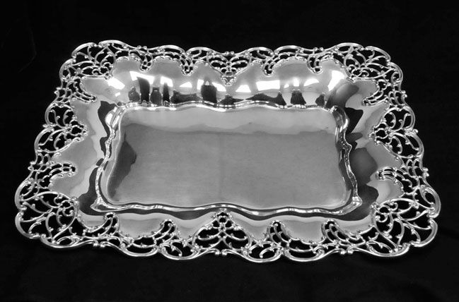 With open reticulated design along edge, "Towle". Approx. 15" x 10.5", 36 ozt. Please read our terms of sale.