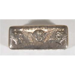 Rectangular cut glass and silver topped trinket box, the top embossed with cherubs, London 1901, 9cm long