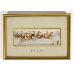 Rectangular gilt framed Stevenograph, 'The Start', 23cm long