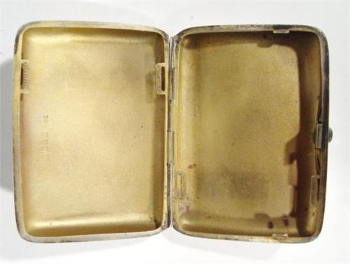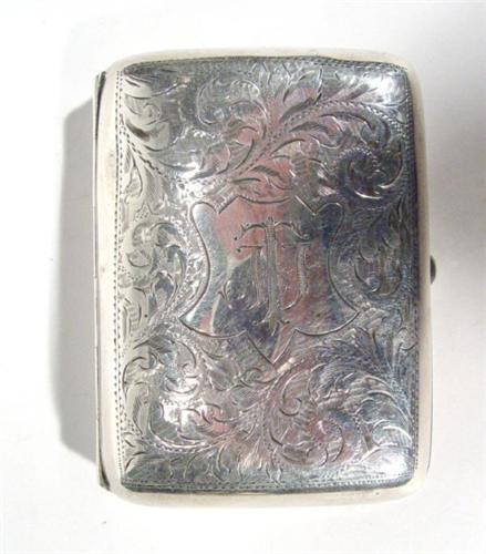 Rectangular silver cigarette case chased with leaves, Chester 1918, 7cm long