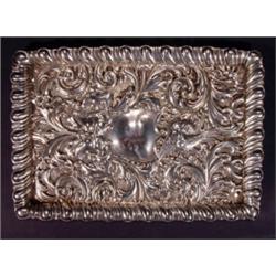 Rectangular silver tray, heavily embossed with a bird and a face surrounded by swags, Birmingham, 1905, 24cm in length
