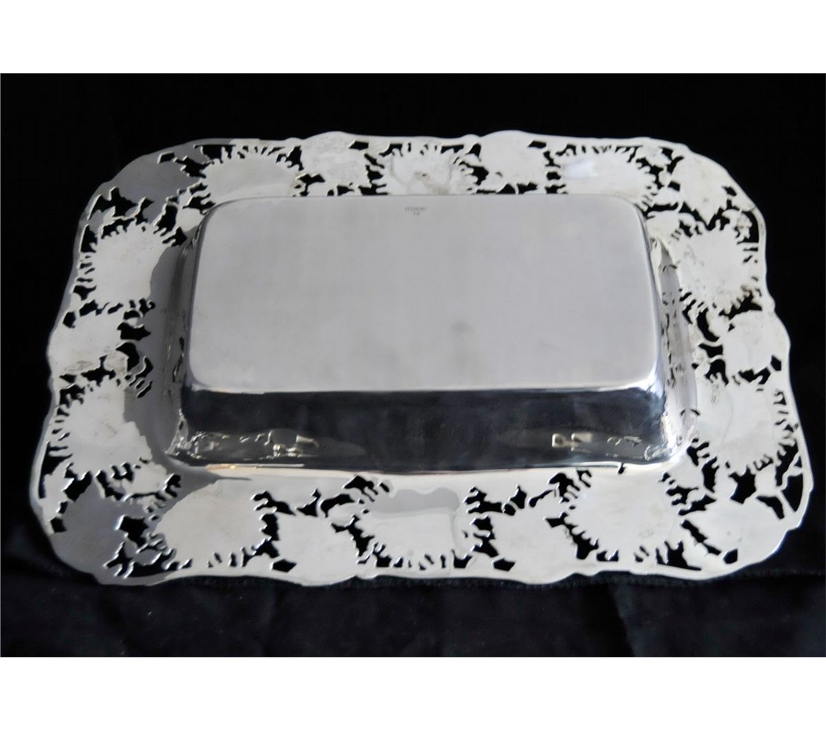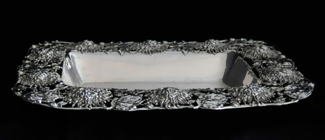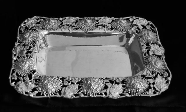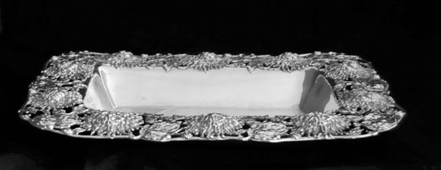 With floral border. Approx. 15" x 10.5", 37 ozt. Please read our terms of sale.