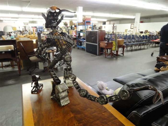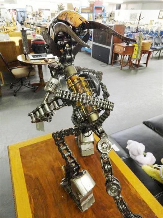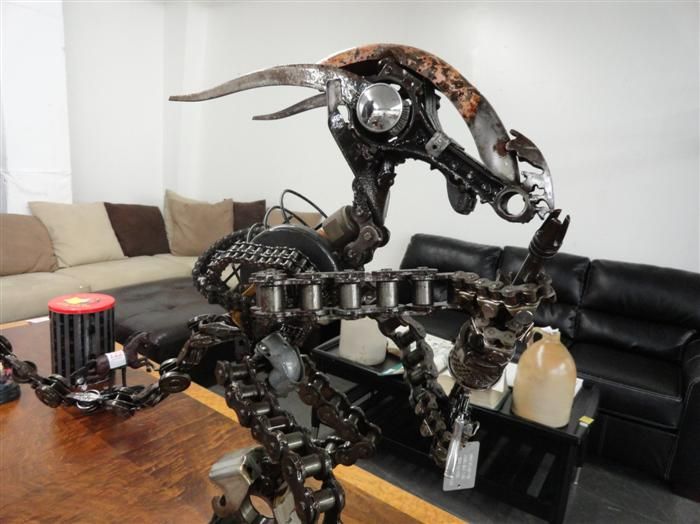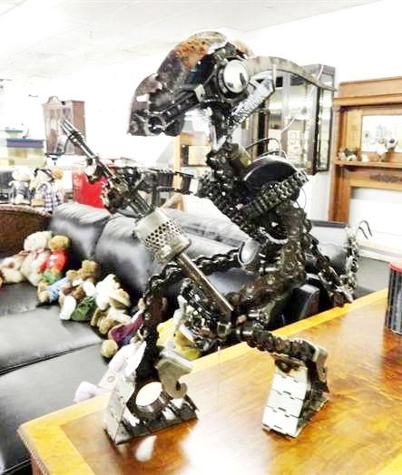 Recycled Metal Art Alien Figure - 32" H x 42 1/2" L
