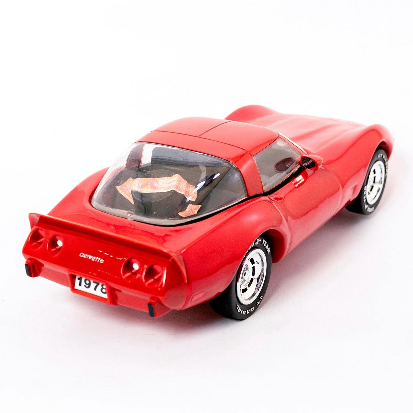 Porcelain undercarriage. Red glossy finish with black interior. Alcohol not included. Comes with original box. Automobilia and Americana