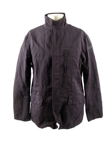 Frank (Bruce Willis) navy blue button and zipper up the front 'Emporio Armani' jacket, quilted inside with zipper pocket on the front. (size L)