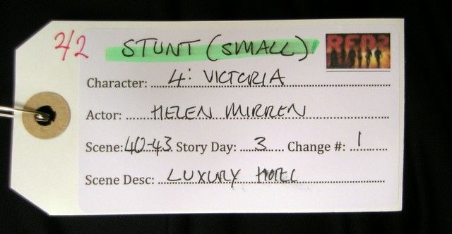 Red 2 - Victoria (Helen Mirren) screen worn, hero, dark blue with broach on the front, zipper in the back long dress. Includes wardrobe tag!