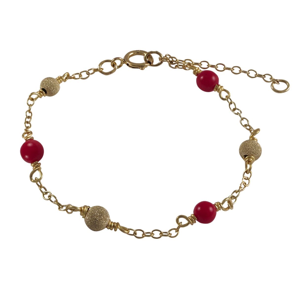 Red 4Mm Balls And Gold Filled 4Mm Laser Balls On Gold Filled Chain Bracelet, 4" 1"