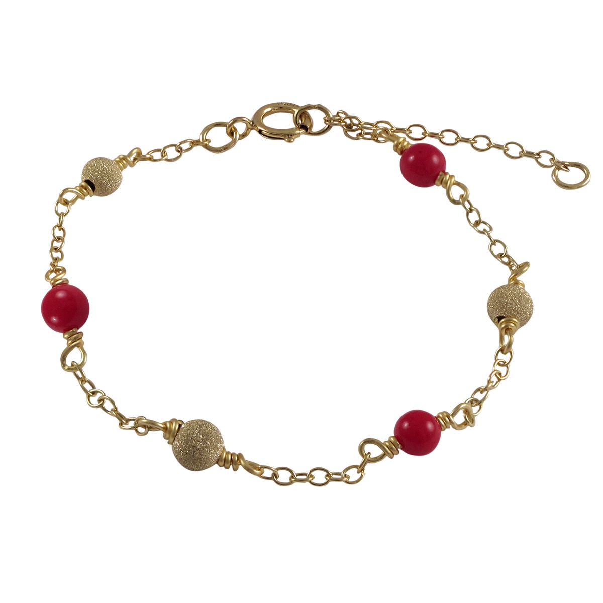 Red 4Mm Balls And Gold Filled 4Mm Laser Balls On Gold Filled Chain Bracelet, 5" 1"