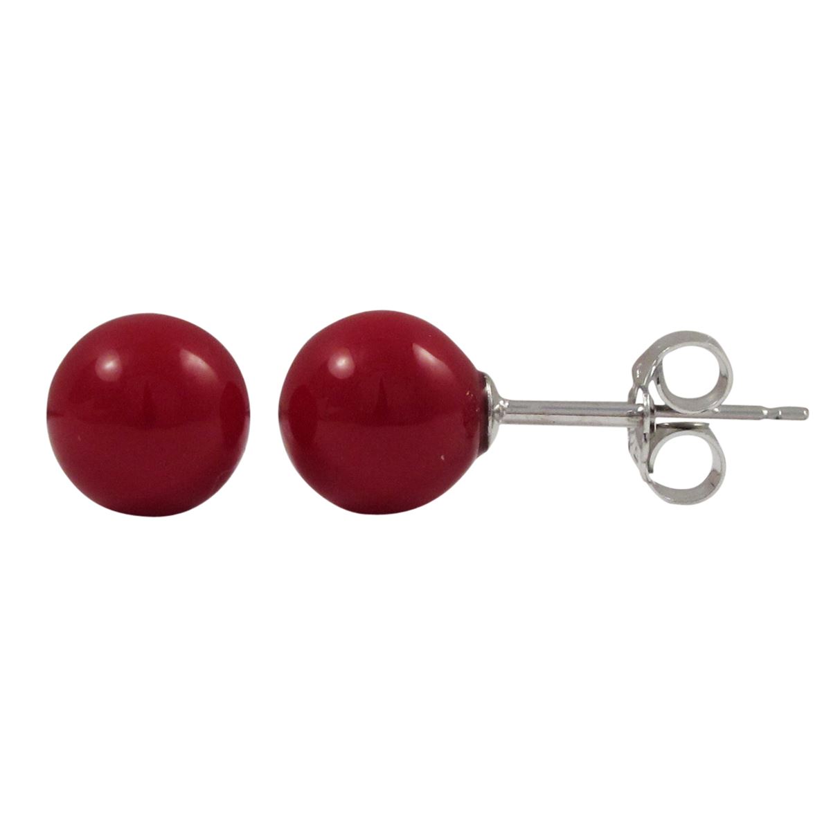 Red 6Mm Ball On Rhodium Plated Sterling Silver Post, Stud Earrings