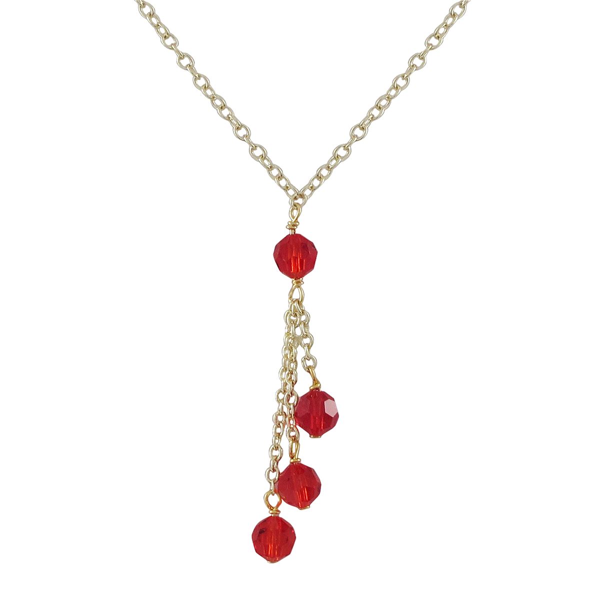 Red 6Mm Preciosa Facetted Beaded Gold Tone Brass Necklace