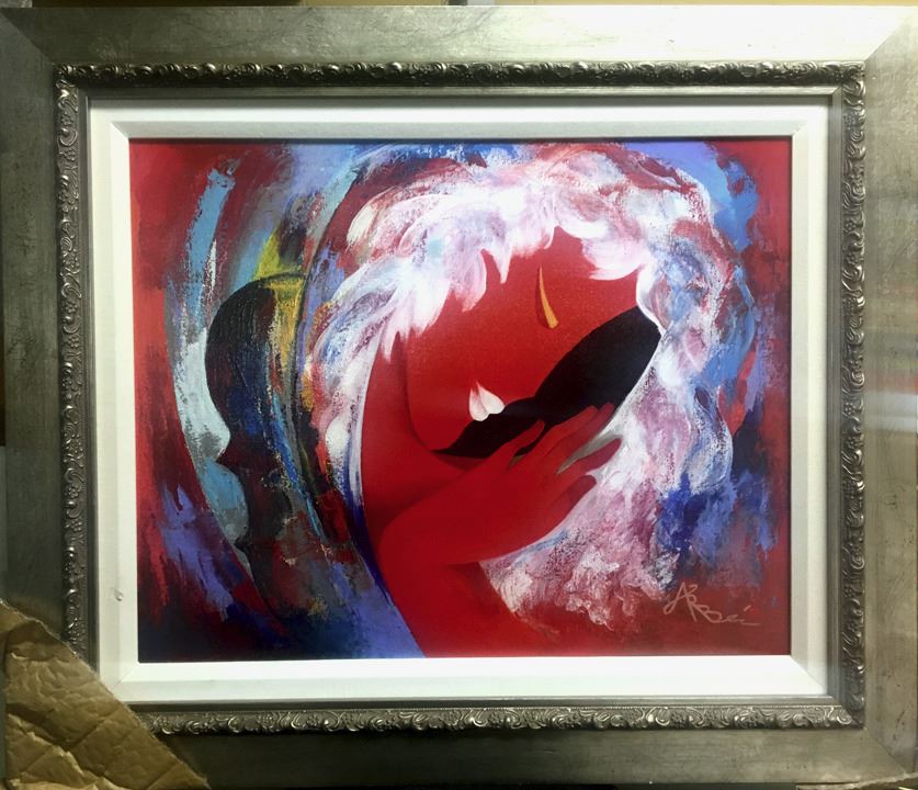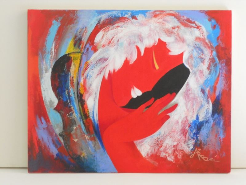 A Framed 20x24" Acrylic Original on Canvas. "Red All Over" is Arbe enjoying a play on words, but also expressing the feeling of utter embarrassment we have all slipped in and out of at different times in our lives.