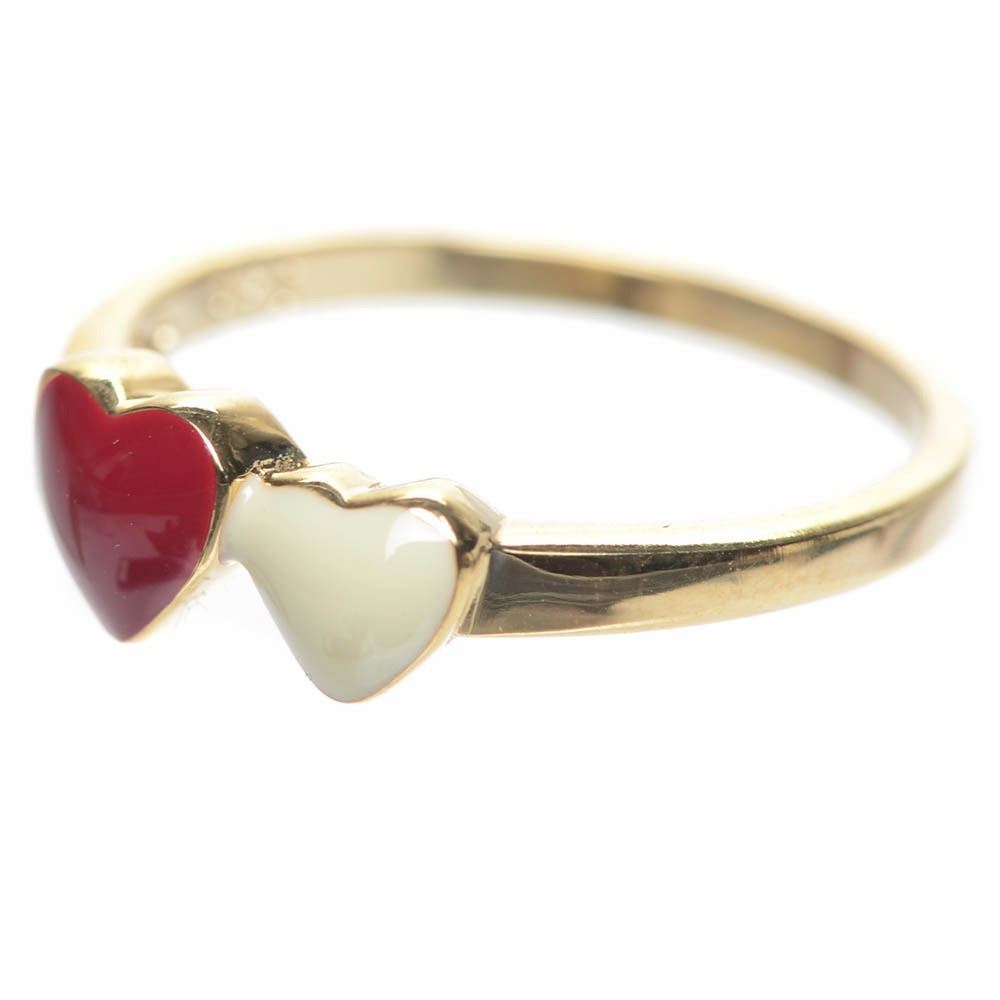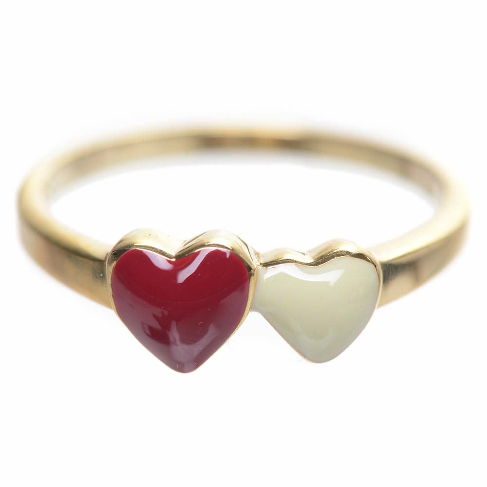 Red And White Enamel Hearts Gold Tone Sterling Silver Ring Size 7