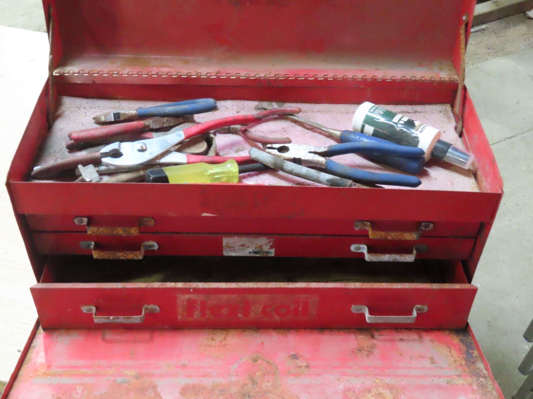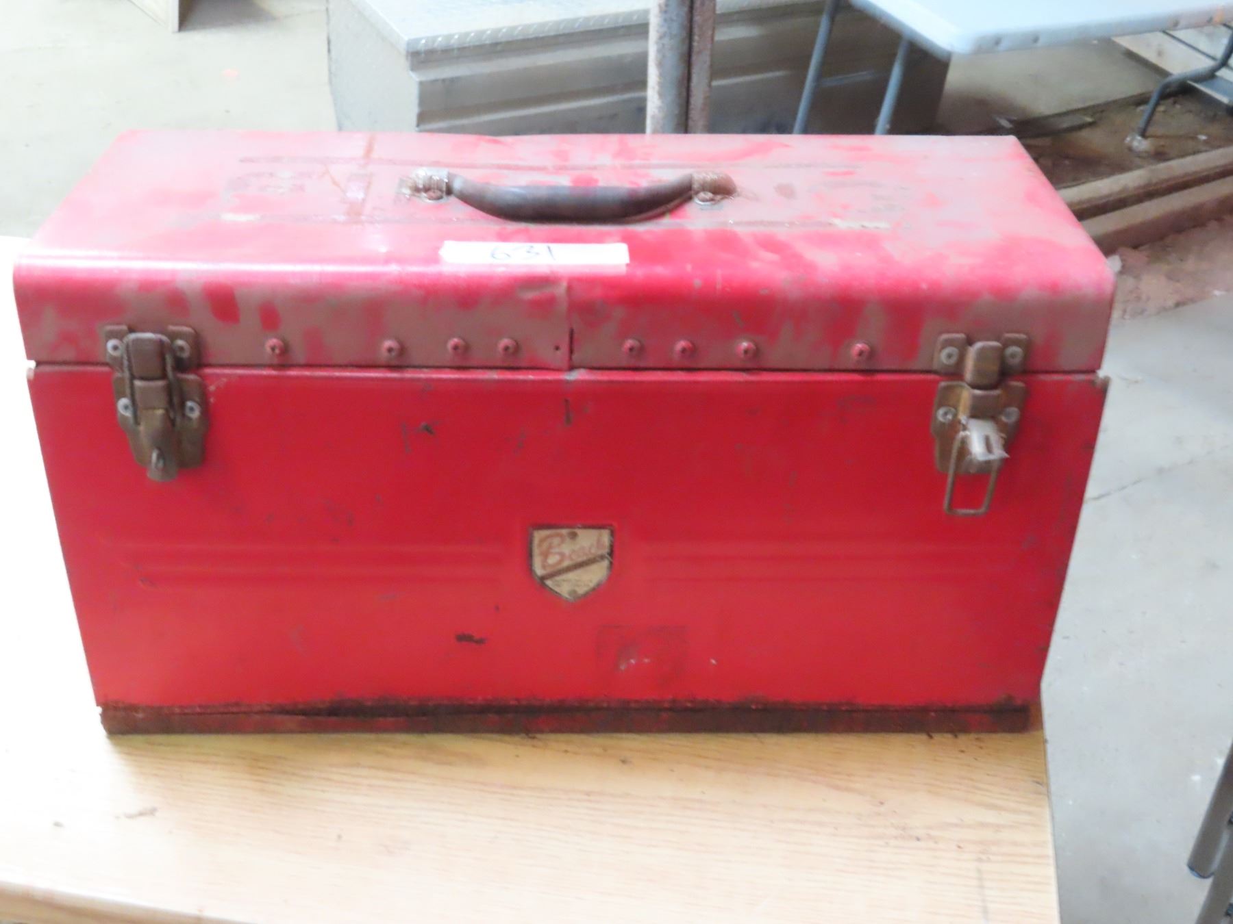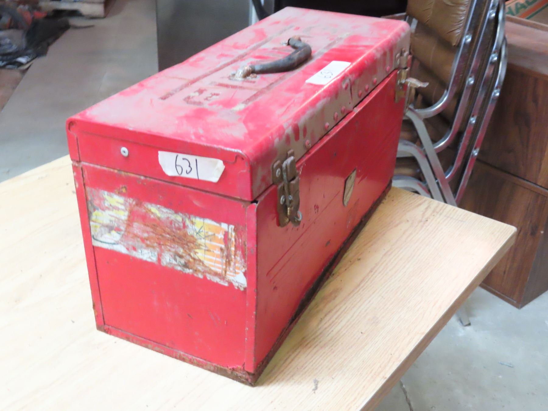 Red Beach Metal Carry Tool Box - Finning logo - Filled with Tools