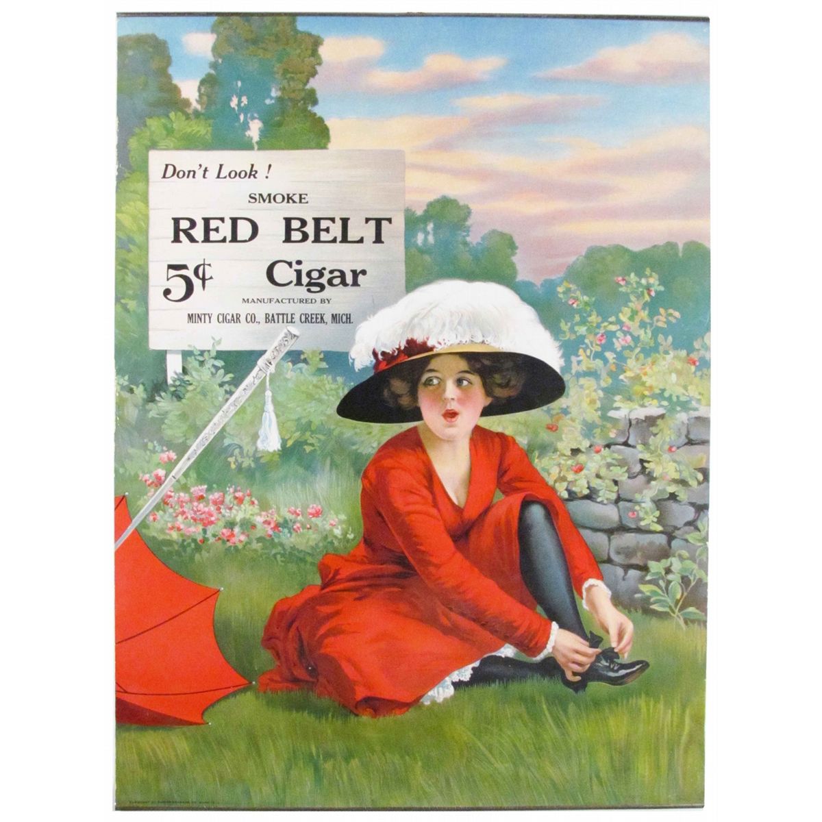 Red Belt Cigar Paper Sign. Original bands top and bottom. Copyright by Parker-Brawner Co. Wash. DC. Near mint condition. 15 X 20 inches.
