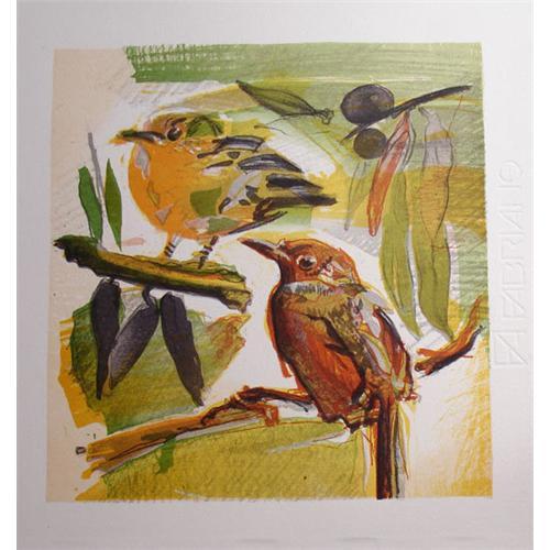 <tr><td><font size="2" face="Arial, Helvetica, sans-serif"><strong><font color="#000033">Title:</font></strong>Red Birds - Original Signed Lithograph by Eva</font></td></tr>