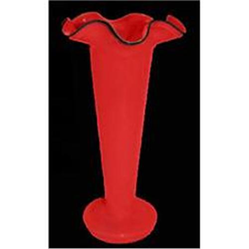 This red Tango glass vase was produced in Czechoslovakia during the early 20th century and is acid etched marked underneath. Featuring a crimped rim with a black border and a circular foot. measuring 8 inches tall and is in excellent condition with no chips, cracks or other damage.