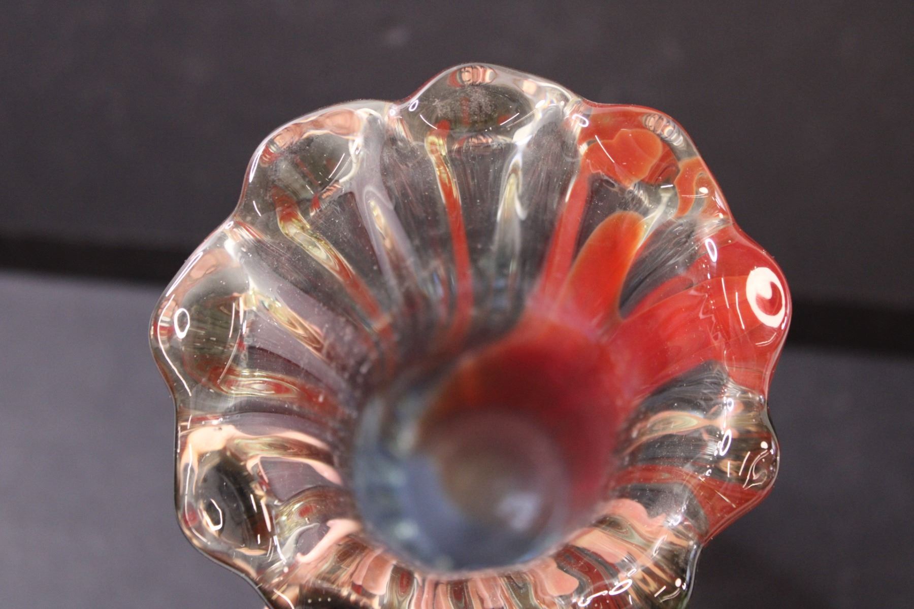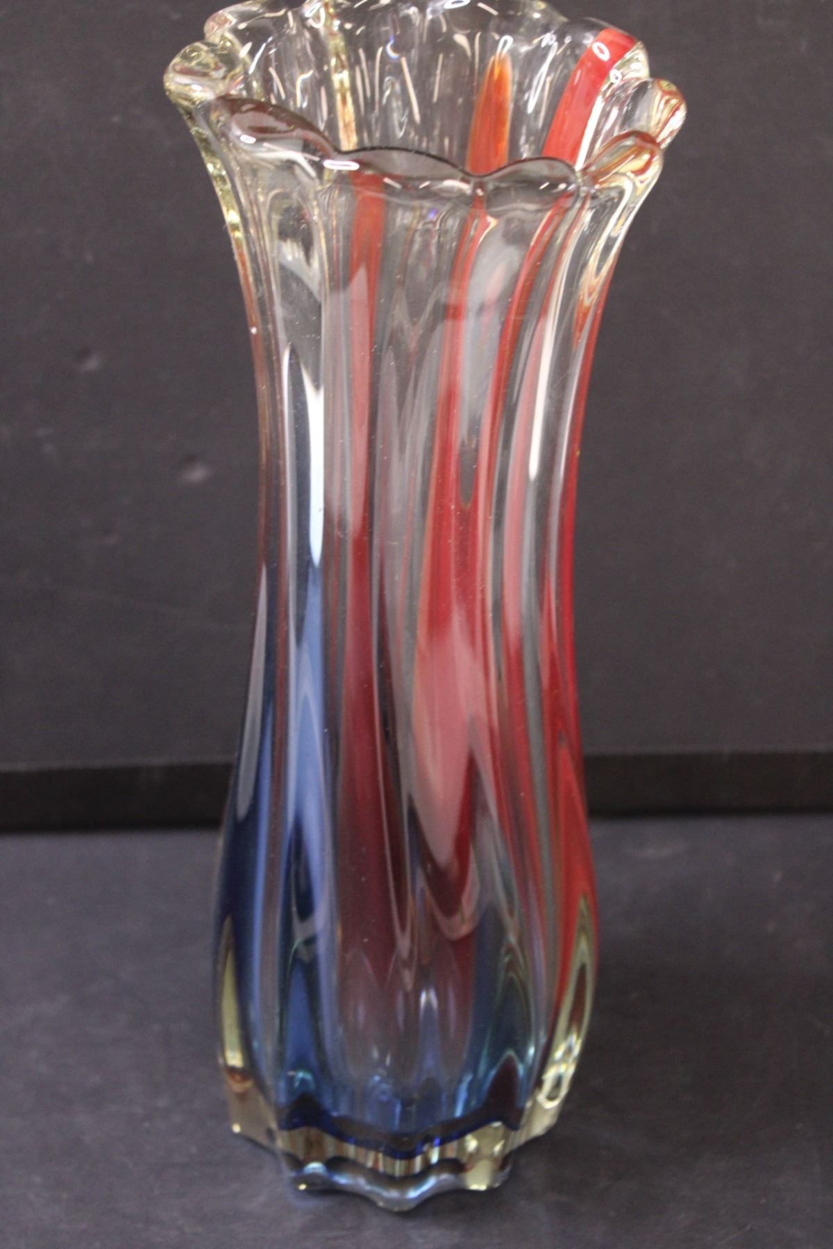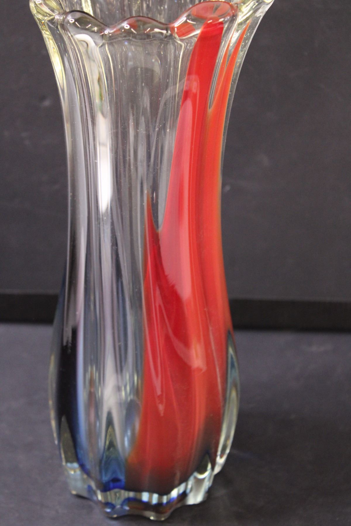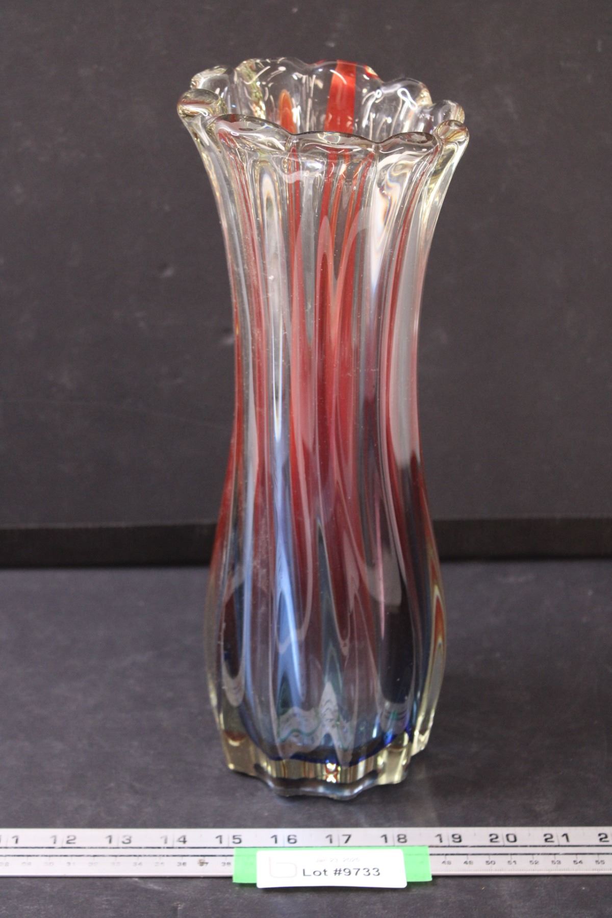 Red & Blue w/Clear Art Glass Vase - 13" Tall