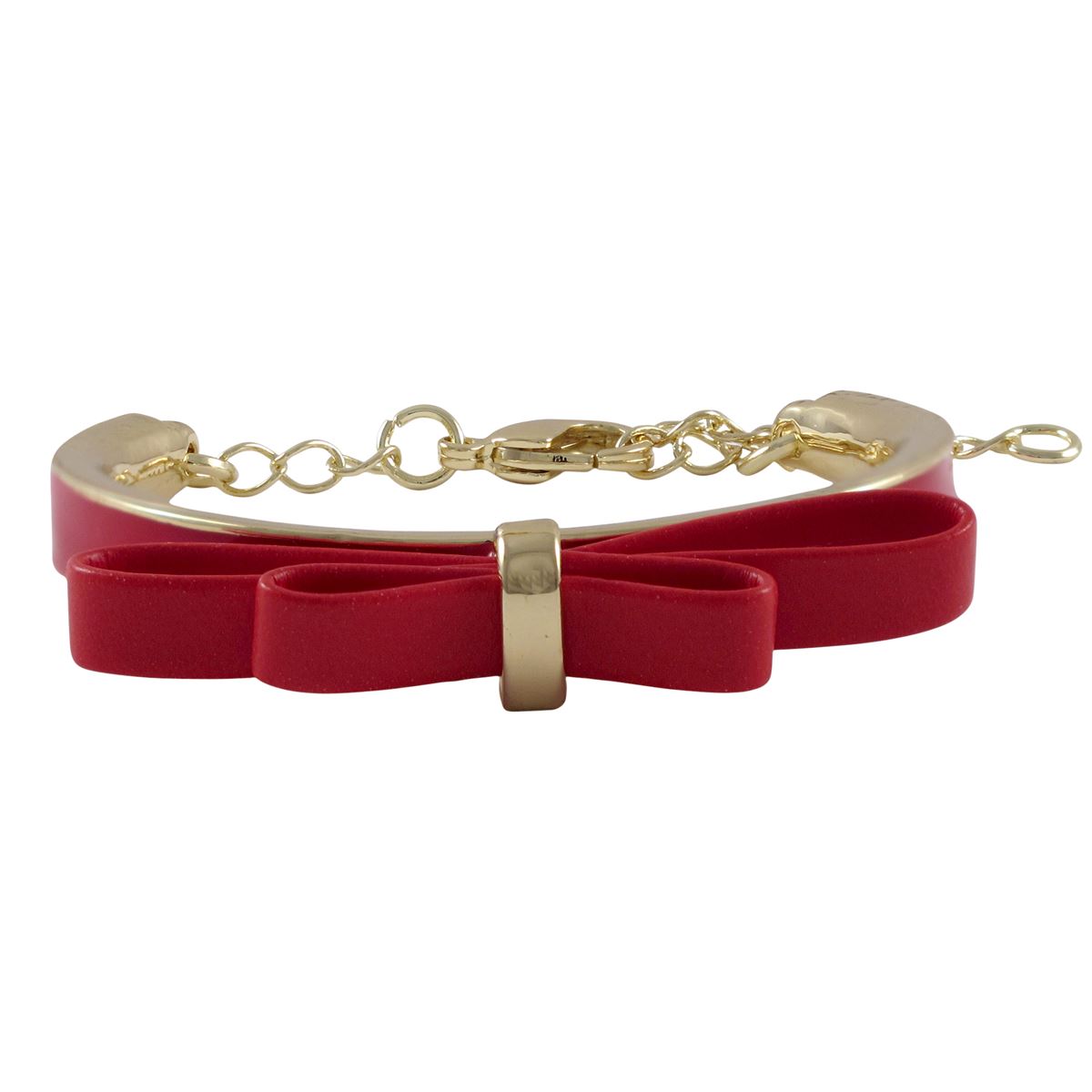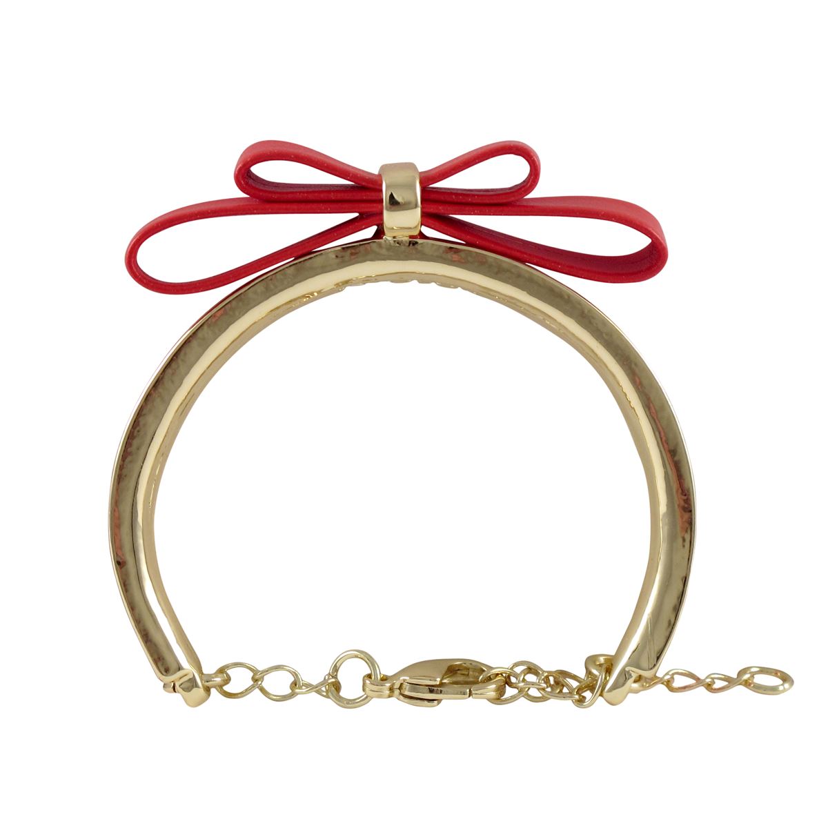 Red Bow On Red Enamel Gold Plated Brass Bangle Bracelet, 4.5&Quot; 1&Quot;