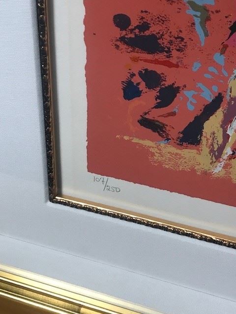 Hand signed by the artist - Limited edition serigraph #107 of 250 - Framed size = 35" x 42"