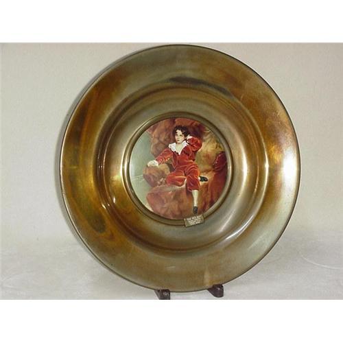 "The Red Boy" (Master Lambton) from the original painting by Lawernce P.R.A. (1769-1830). The tin plaque is 7" in diameter and the brass frame is 16 3/4" in diameter. The brass frame is darkened with age and will polish beautifully. Made in England, this plaque will add just the right touch to your room. (3)