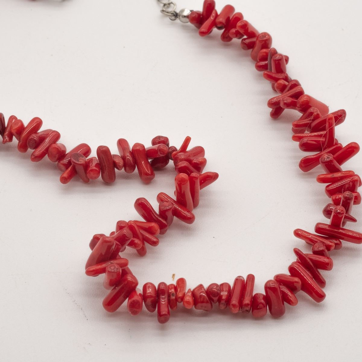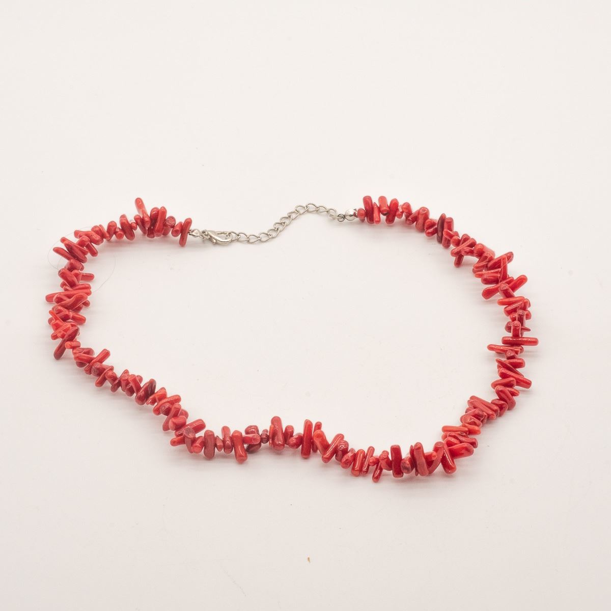 Red Branch Coral Necklace, measures 16"L end to end, adjustable length