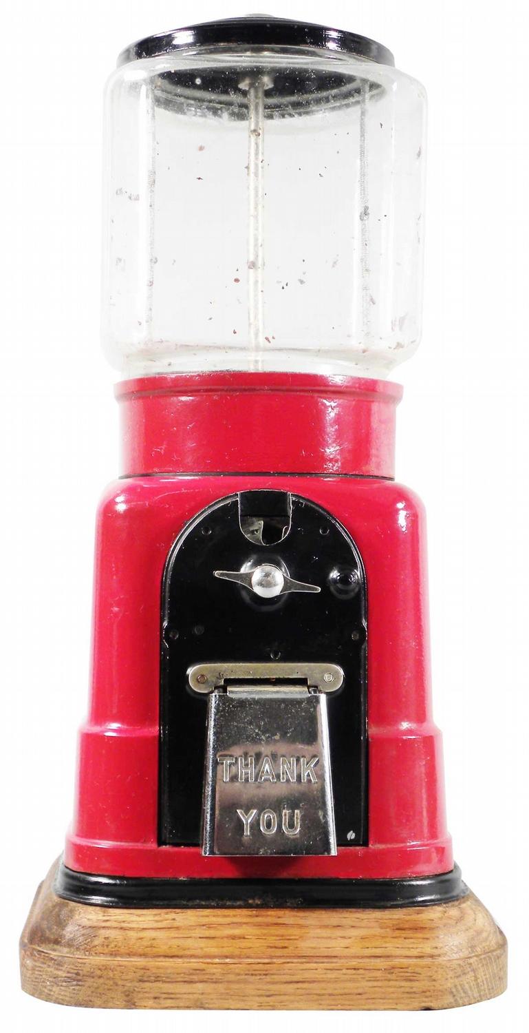 Red Cast Iron Peanut Vendor. Very good condition. 18 1/2 inches tall.
