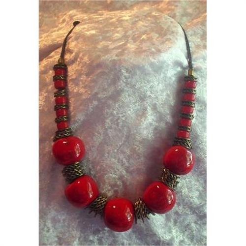 <tr><td>Title:Red Ceramic Bead necklace</td></tr>