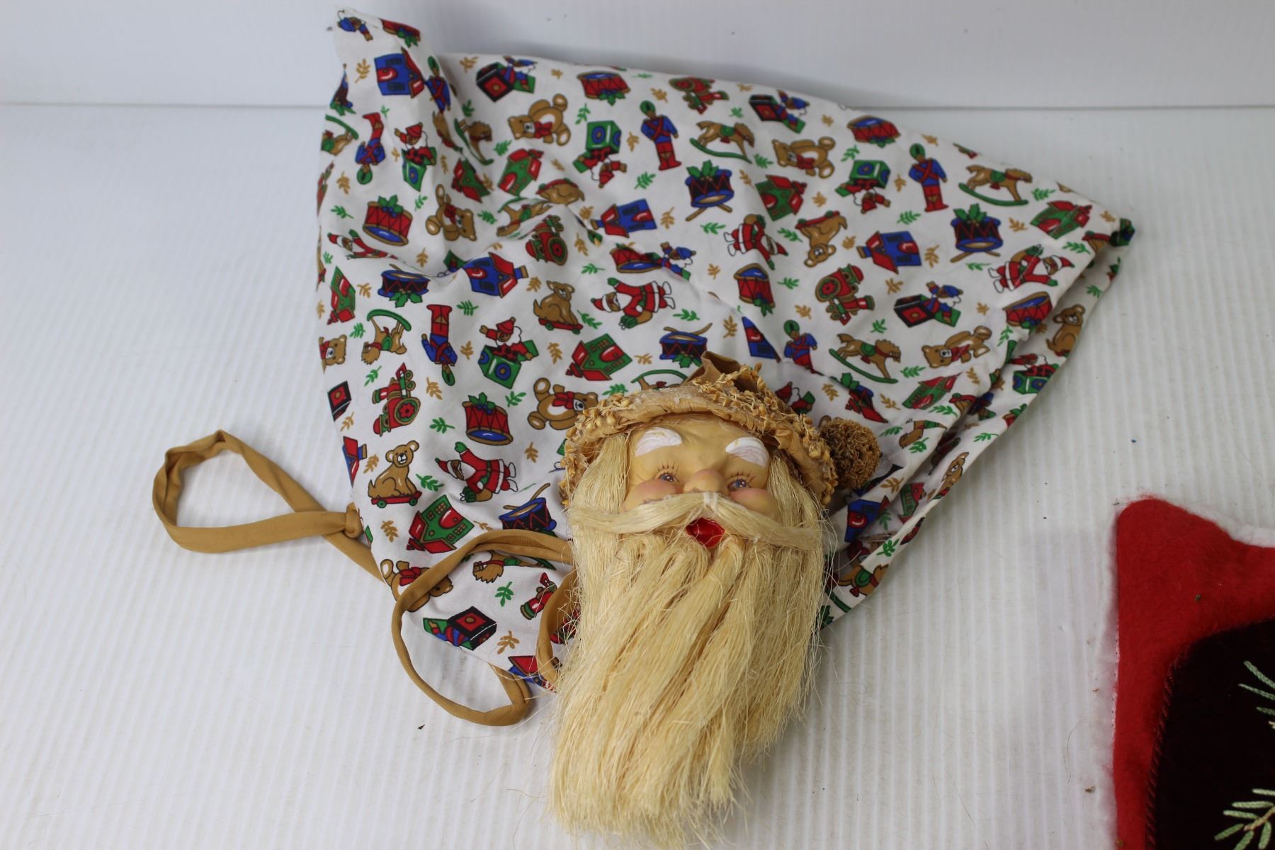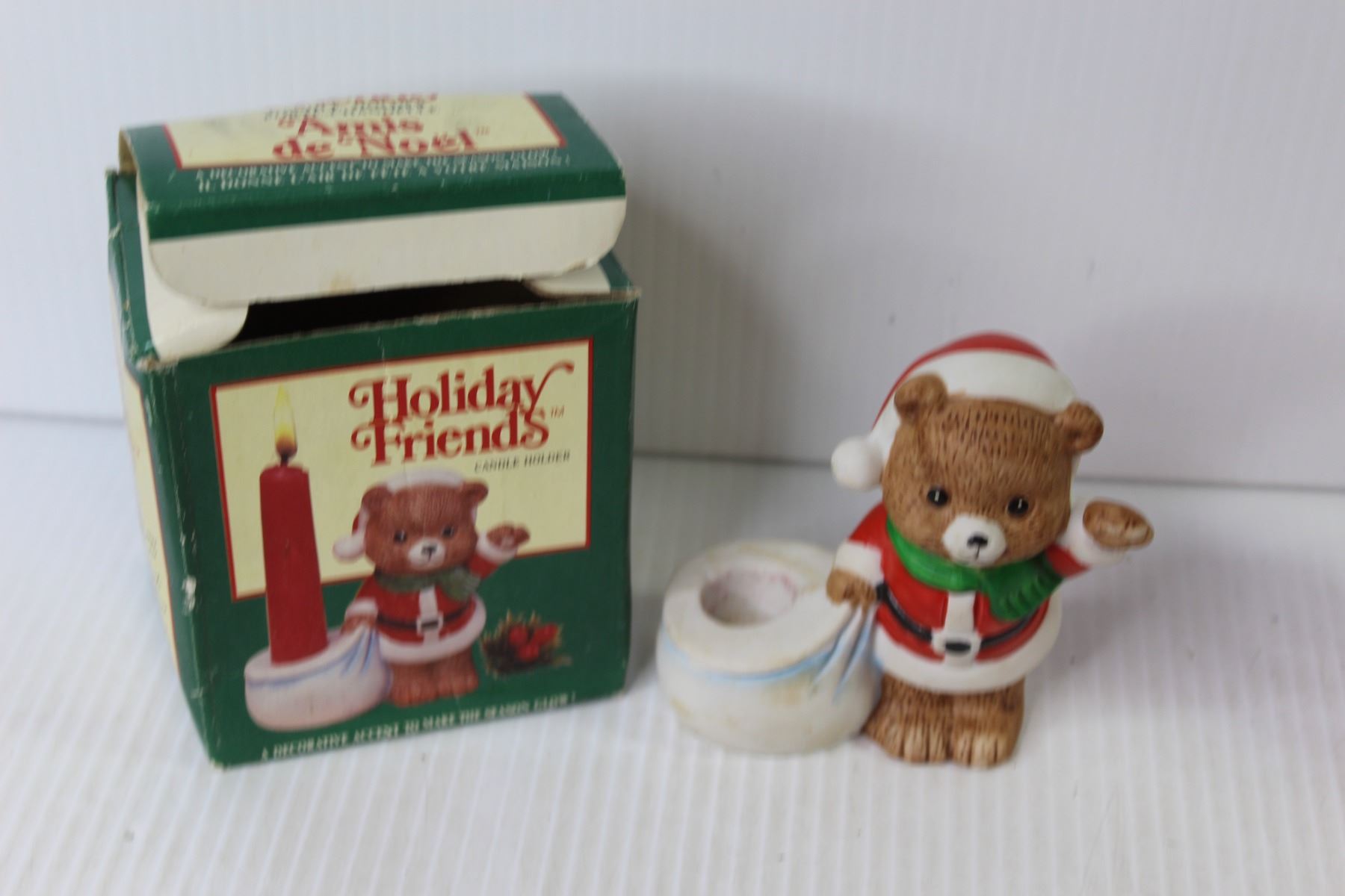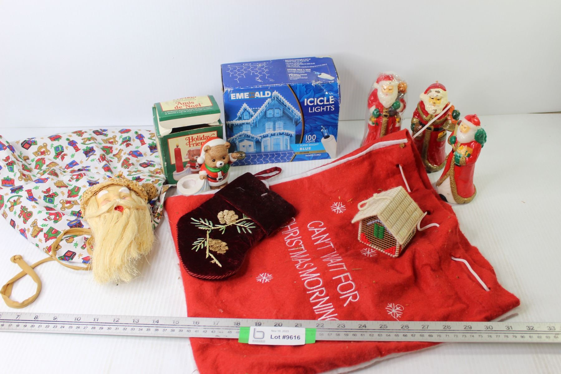 Red Christmas Bag - (3) Santa Candles - Icicle Lights in Box - Teddy Candle Holder in Box - Festive Head - Misc. items