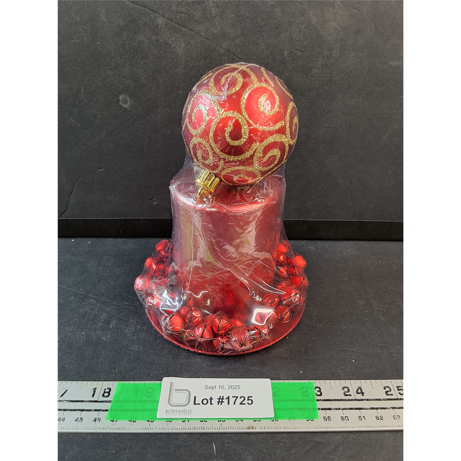 Red Christmas Candle with Bells and Christmas Tree Ornament - Sealed