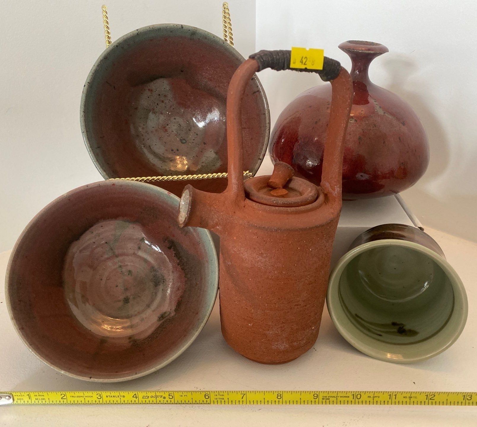 Red Clay Tea Pot w/ Assorted Kitchen Pottery