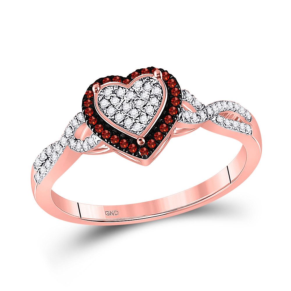 10kt Rose Gold Womens Round Red Color Enhanced Diamond Heart Cluster Twist Ring 1/5 Cttw