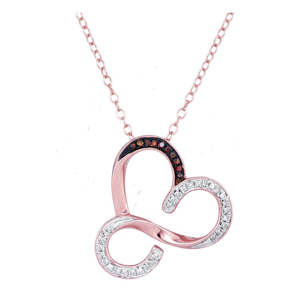 10kt Rose Gold Womens Round Red Color Enhanced Diamond Heart Pendant Necklace 1/8 Cttw