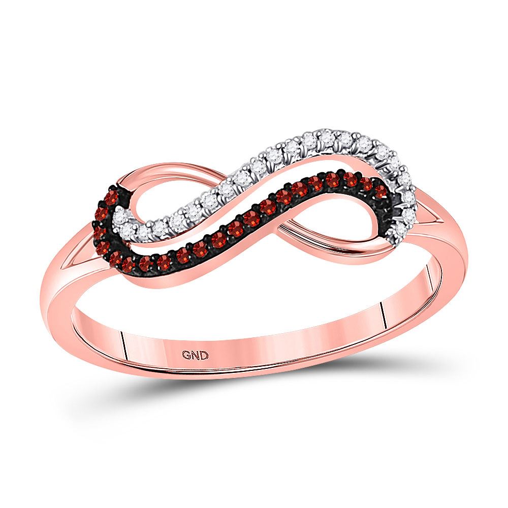 10kt Rose Gold Womens Round Red Color Enhanced Diamond Infinity Ring 1/10 Cttw