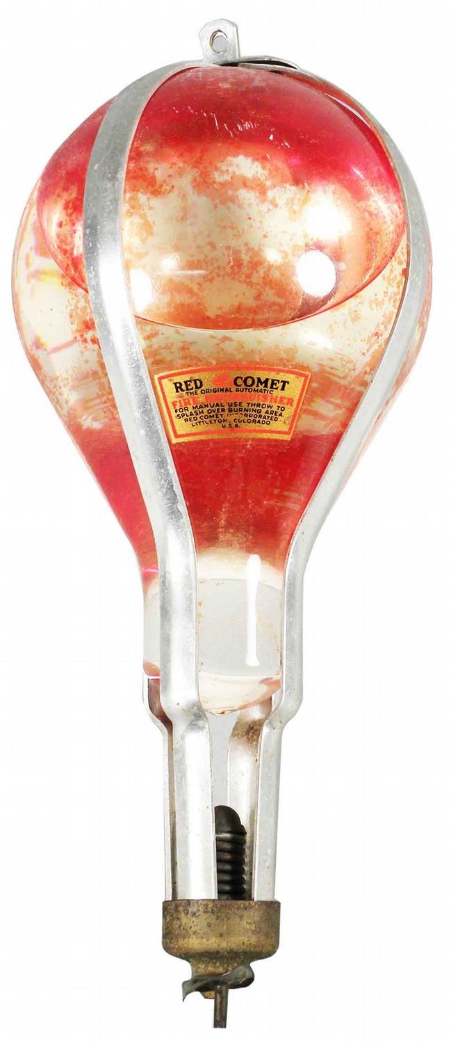 Red Comet Fire Extinguisher, "The original automatic fire extinguisher. Excellent condition. 4 1/2 inch diameter X 10 inches tall.