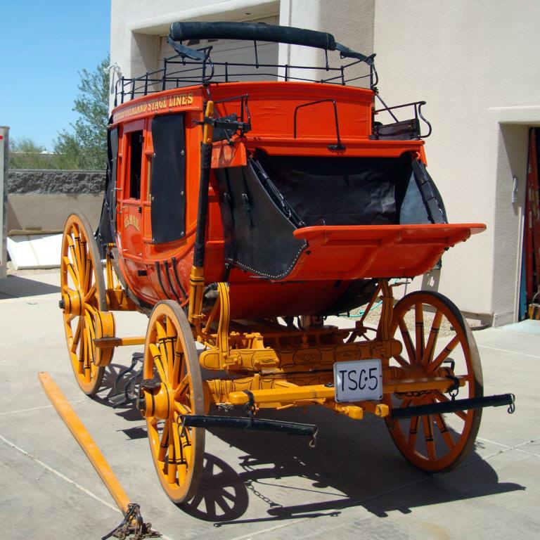 Red Concord Mail Coach made by, Frizzell Coach & Wheel Works, Oklahoma City, OK. Unknown model numbe