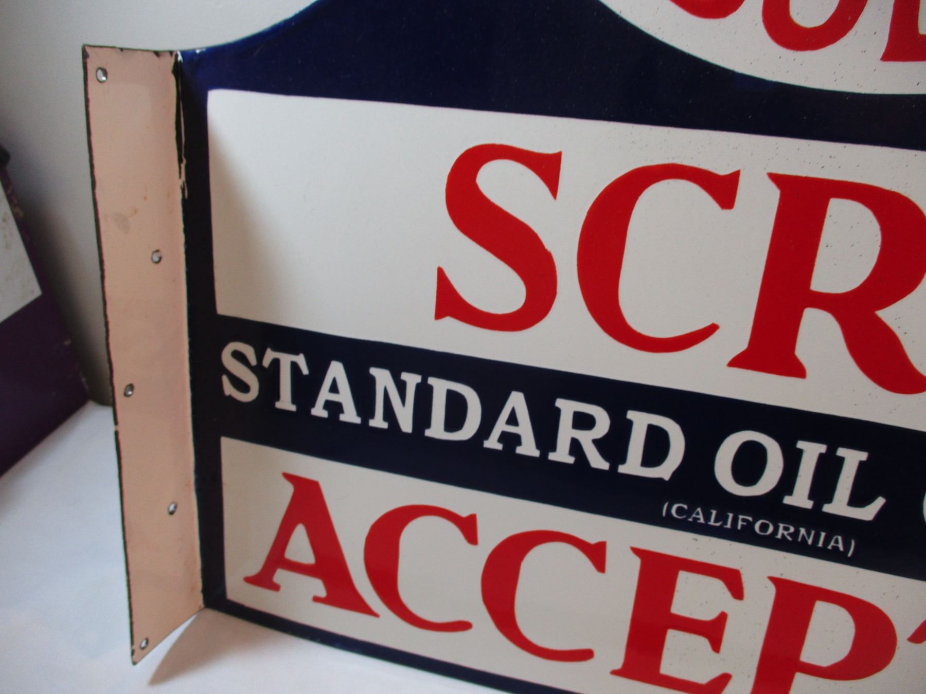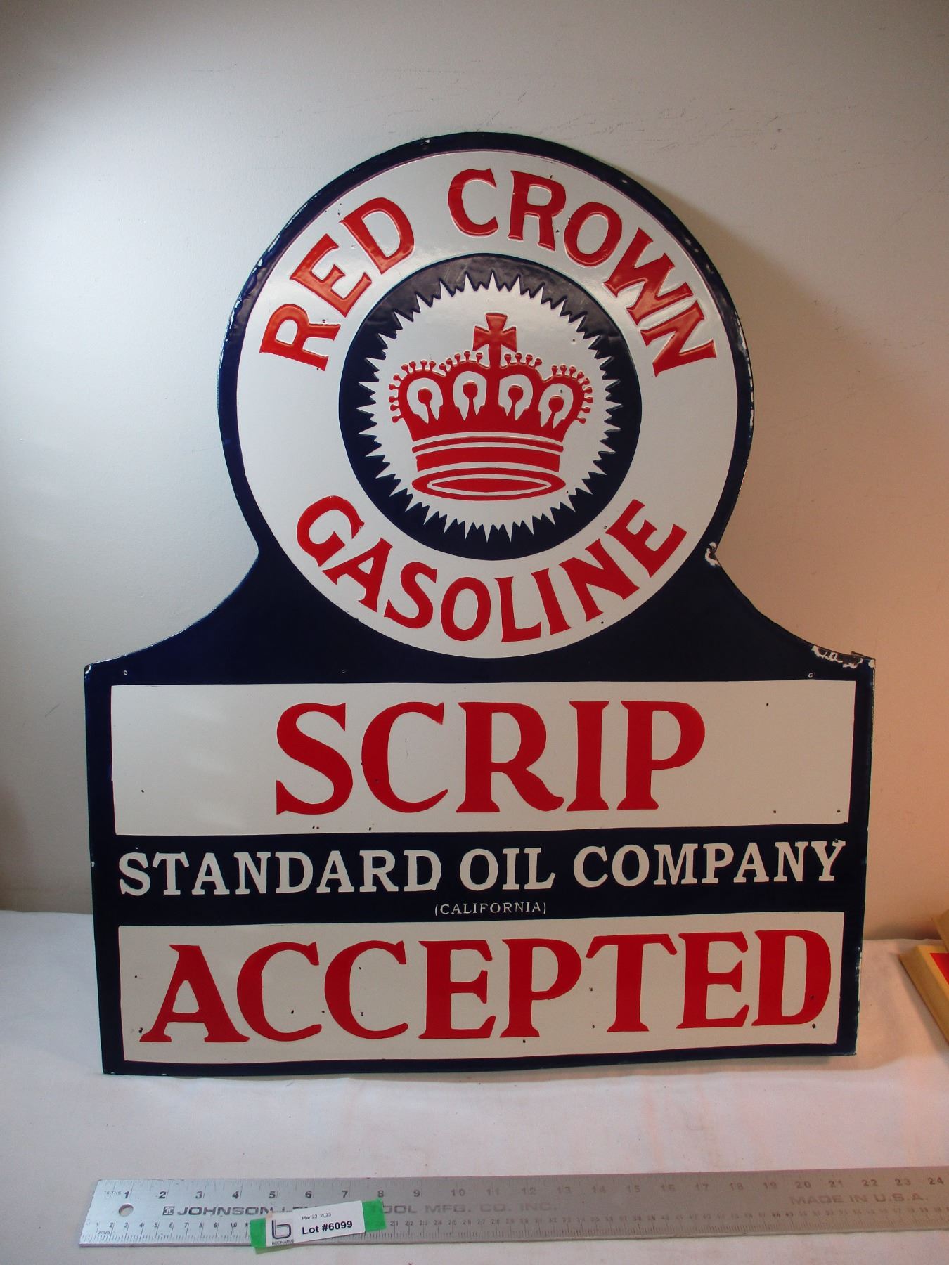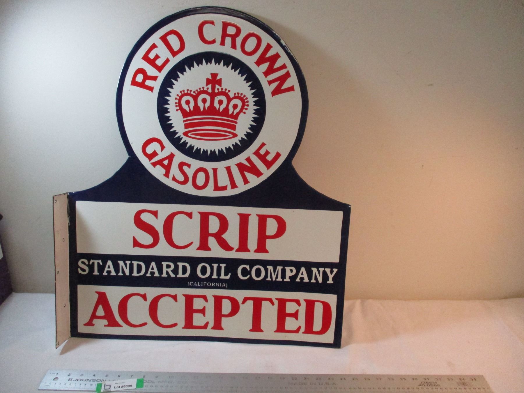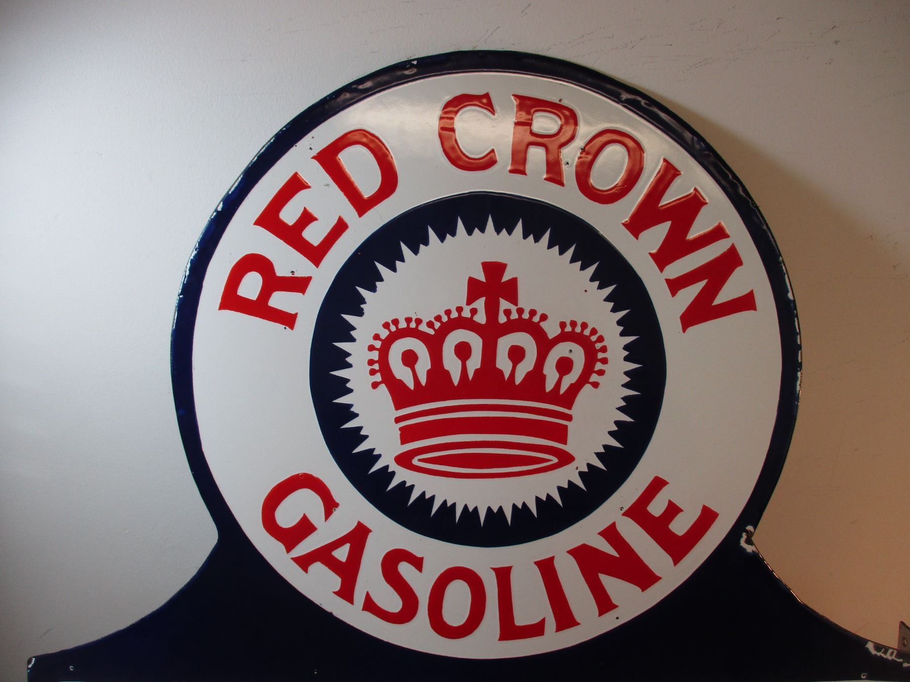 *Red Crown Gasoline Double Sided Porcelain Sign w/ Flange (24x28)