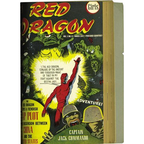 <B>Red Dragon Comics and Super Magician Comics Softcover Bound Volume (Street & Smith, 1943).</B></I> Some inflammatory anti-Japanese propaganda covers are the most striking features of the comics included here! The volume contains <B>Red Dragon</B></I> (first series) V1#5 through V1#8 and Super Magician Comics V2#1 through V2#3 and V2#5 through V2#7. This would be an ideal candidate for re-binding as a hardcover, a fairly inexpensive process. The paper cover is date-stamped "Sep 5 1956" on the inside and has the titles and issues handwritten on the spine. The covers of the comics have superb colors, proving once again that bound volumes are an ideal way to preserve comics. The interior pages are off-white, though the edges are slightly brittle. Overstreet 2006 VG 4.0 value for group = $1,516.<BR><BR><b>Shipping:</b> Books & Catalogs (<a target="_blank" href="http://www.heritageauctions.com/common/shipping.php">view shipping information</a>)