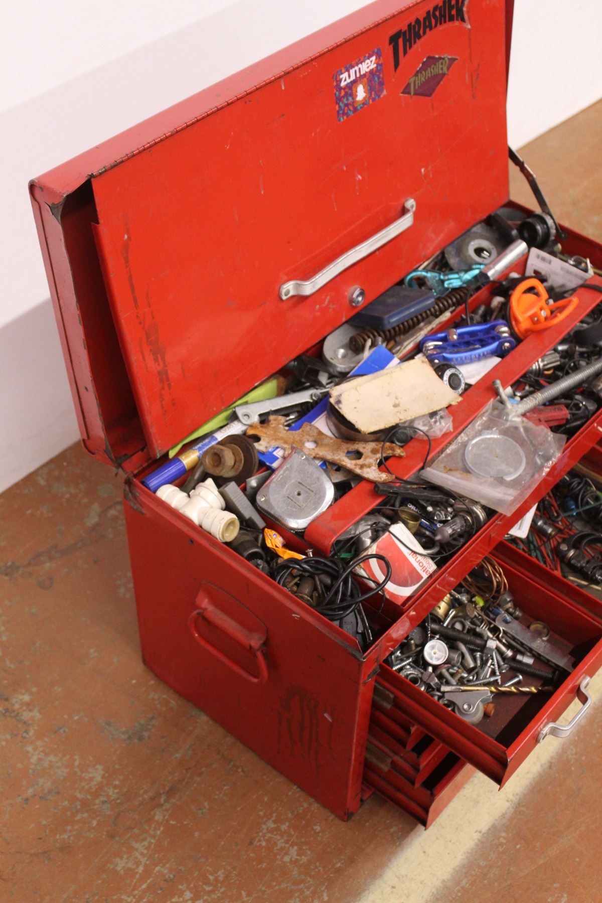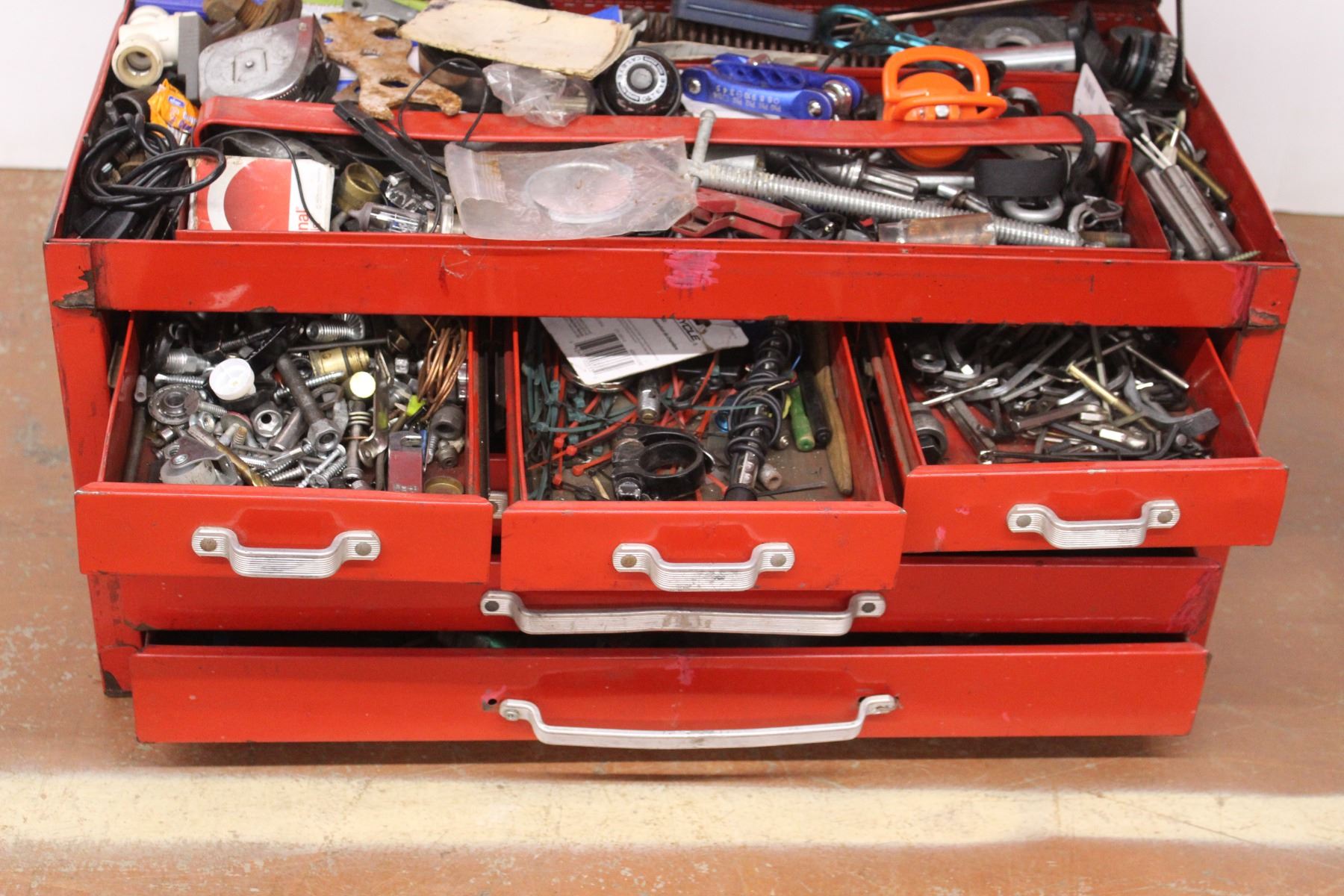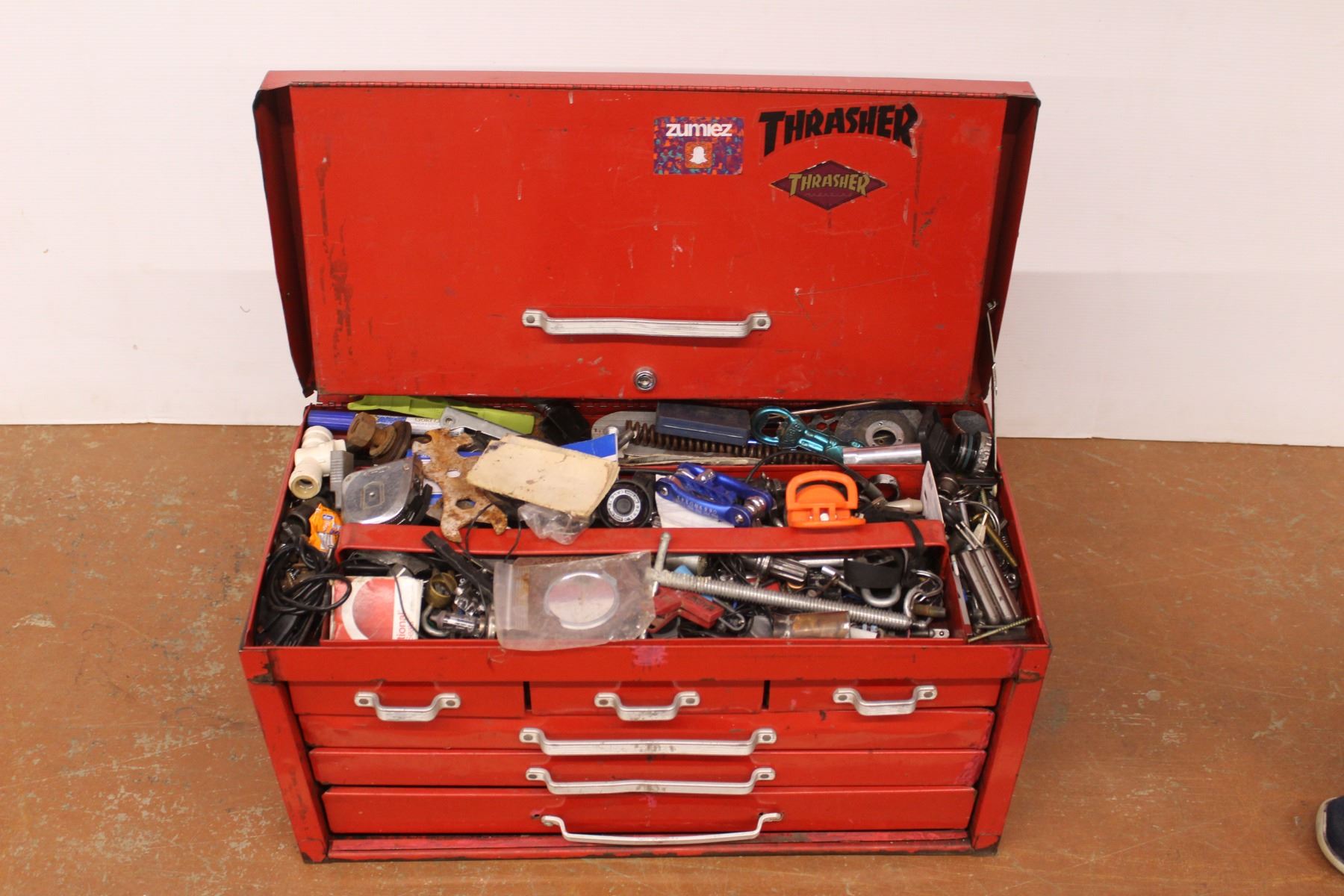 * Red Drawer Toolbox with Assorted Tools and Parts - 26" x 12" x 14"
