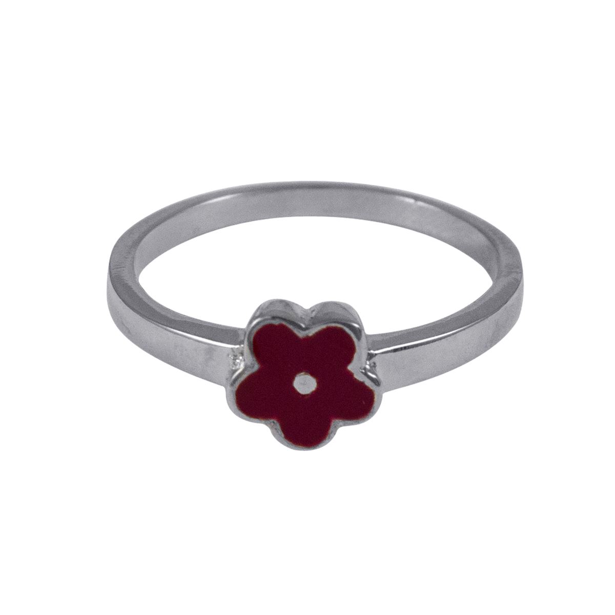 Red Enamel Heart, Sterling Silver Ring, Size 3