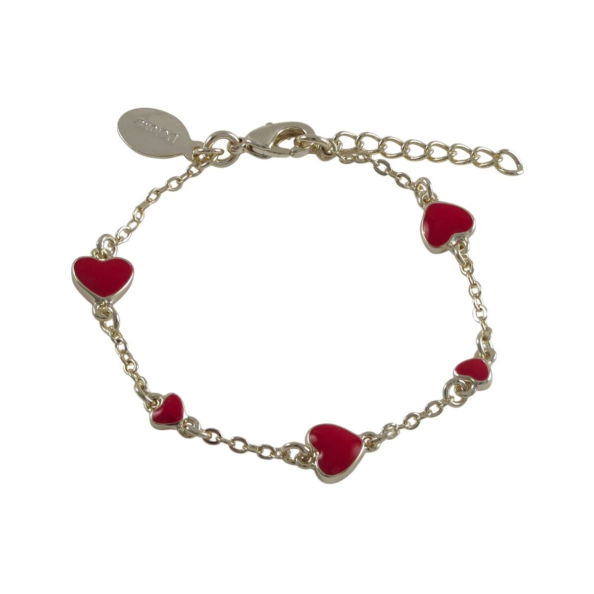 Red Enamel Hearts, Gold Plated Brass Chain, Bracelet, 5