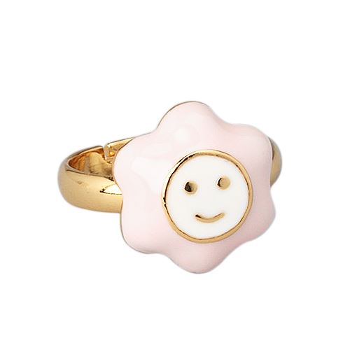 Red Enamel Large Smiley, Gold Tone Brass Ring Adjustable Size 3-4