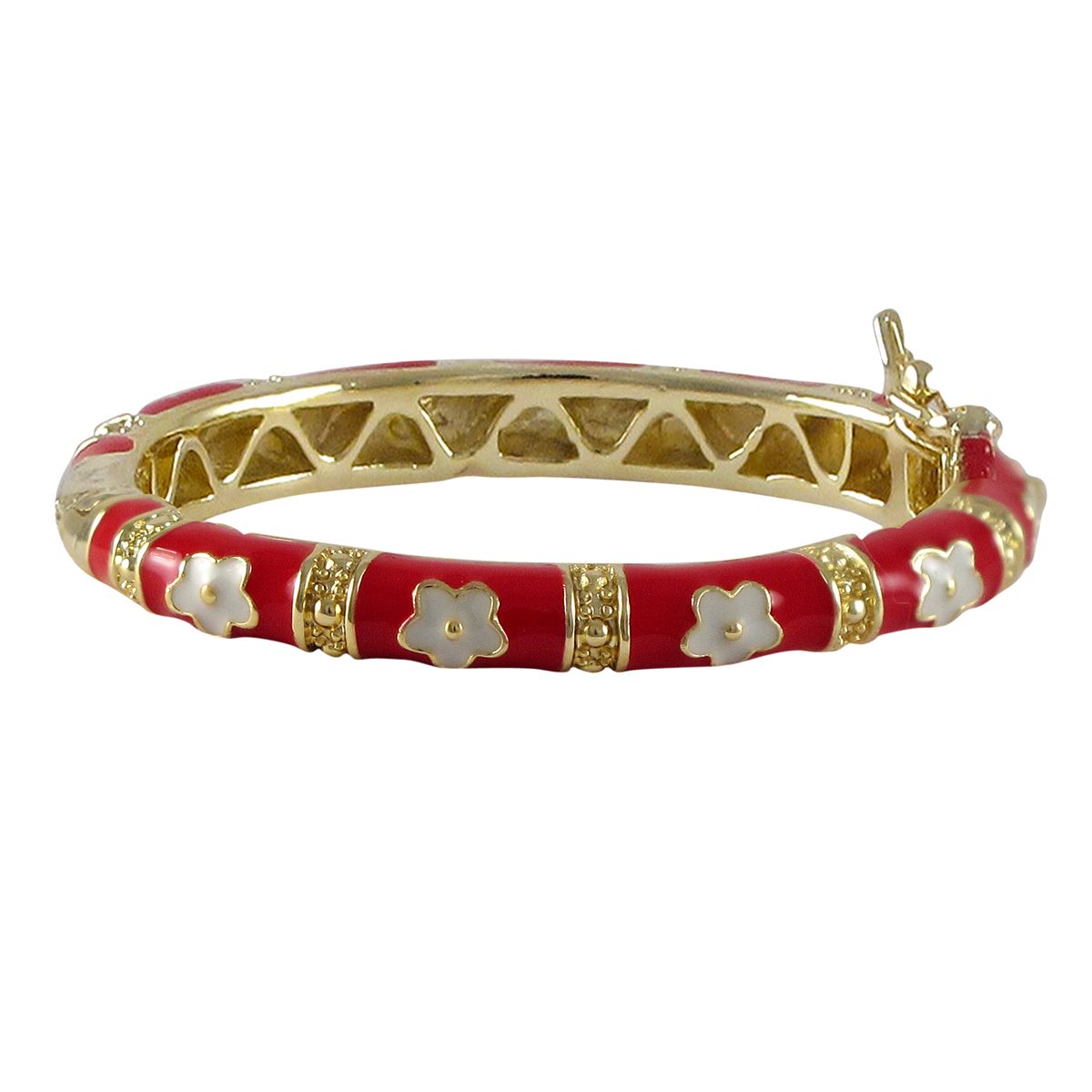 Red Enamel, White Flower-Gold Plated Brass Bangle