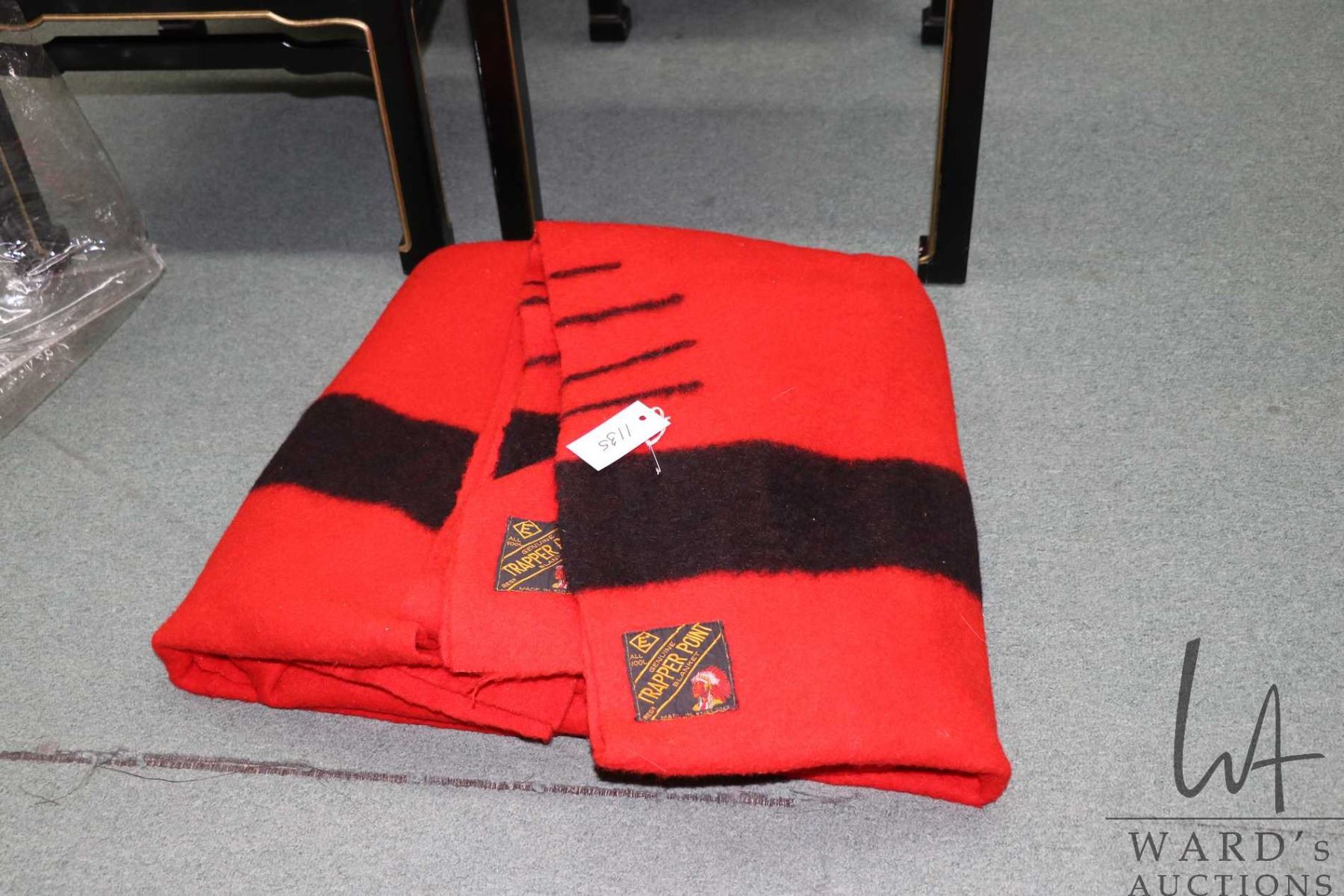Red English made Trappers Point pure wool blanket, approximately 174" X 56" (double length) and marked with four points at either end